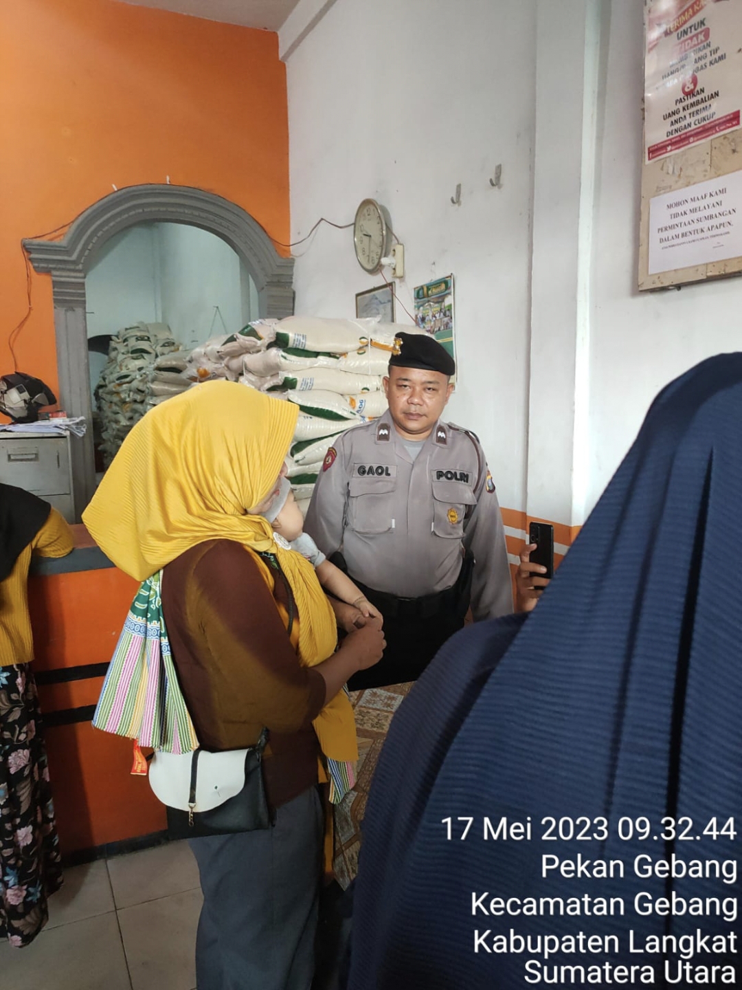 Langkat, JATANRAS NEWS | Waka Polsek Gebang Iptu Darmansyah, Ps. Kanit Samapta Polsek Gebang Aipda H.R. Hutagaol dan Ps. Kanit Binmas Bripka Junaidi melakukan monitoring dan pengamanan pelaksanaan penyaluran Bantuan Pangan thn 2023 bertempat di PT. Pos Indonesia Kantor Lingk. VI Kel. Pekan Gebang Kec. Gebang Kab. Langkat. Rabu 17/05/2023.