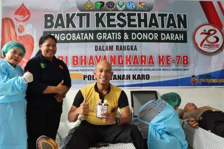 Polres Tanah Karo Gelar Bakti Kesehatan Donor Darah dan Pengobatan Gratis Menyambut Hari Bhayangkara ke-78