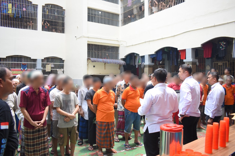 Kepala Rutan, Erwin F. Simangunsong menyampaikan ”Pembagian susu bagi Warga Binaan lansia ini merupakan wujud nyata Rutan Labuhan Deli dalam pemenuhan hak pelayanan kesehatan bagi kelompok rentan, semoga dengan mengkonsumsi susu tersebut dapat meningkatkan imunitas dan kekebalan dari penyakit dan senantiasa sehat”, ujar Karutan. (Iren Sinaga)