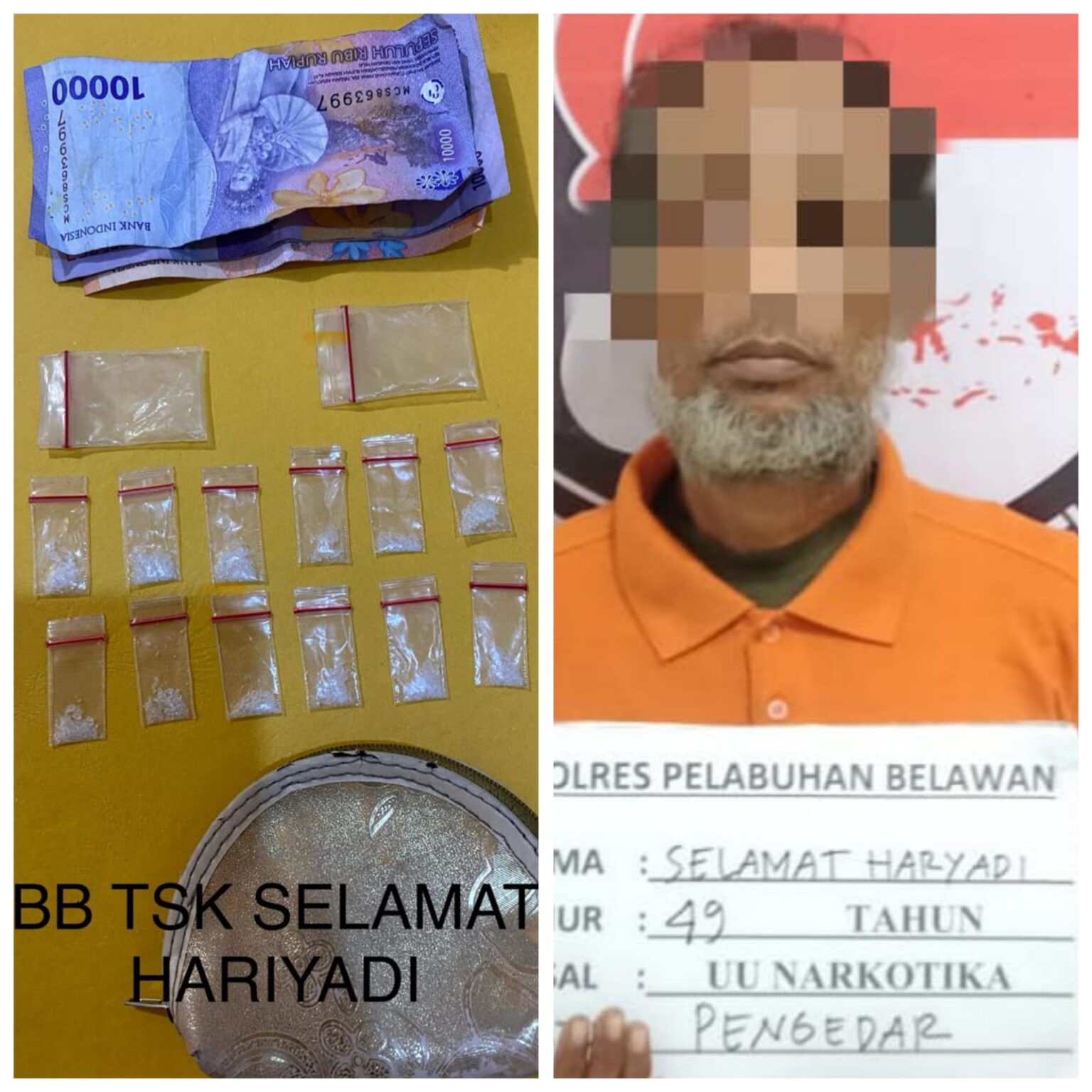 Belawan,Jatanras-News.com | Sat Narkoba Polres Pelabuhan Belawan kembali berhasil mengungkap kasus peredaran narkoba di wilayah hukumnya. Pada Rabu sore, 7 Agustus 2024, petugas menangkap seorang pengedar narkoba di Gang Kantil, Kelurahan Tanjung Mulia. Tersangka yang berhasil diamankan adalah Selamat Haryadi (49), warga setempat.