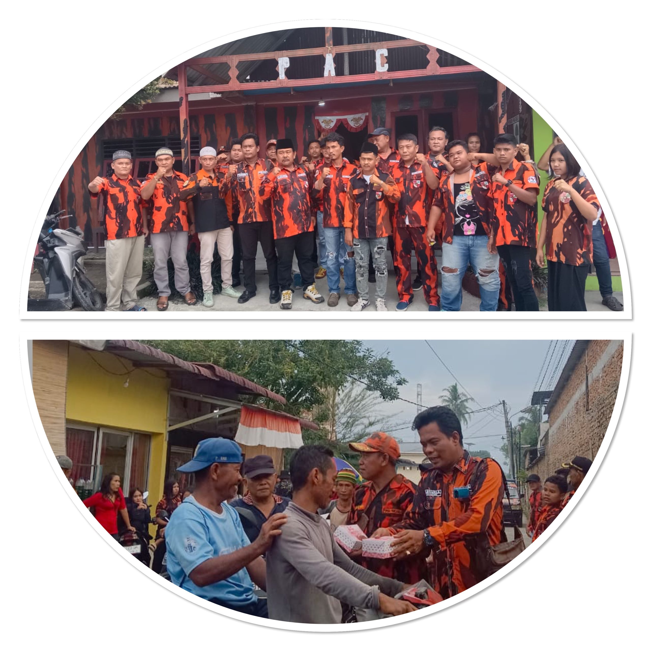 Tampak Ketua PAC PP Pancur Batu, Jhon Princen Amd, S.H didampingi Ketua Pimpinan Ranting PP Desa Baru, Pelaksana Ginting bersama puluhan panitia melayani warga pengguna jalan.