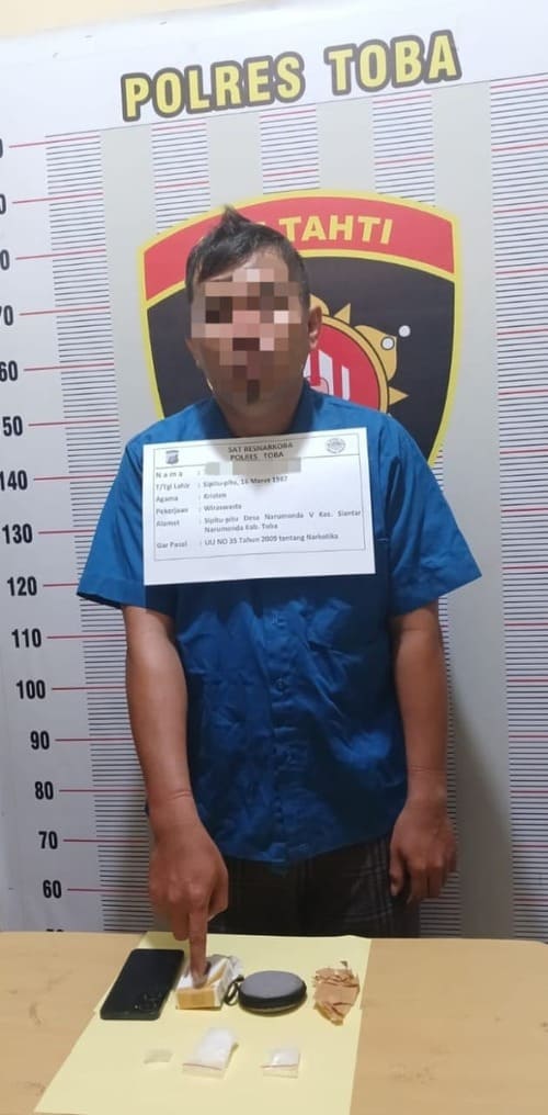 Kapolres Toba AKBP Vinsensius Jimmy Parapaga melalui Kasatresnarkoba Iptu Parulian Nainggolan yang dirilis oleh Kasi Humas AKP Bungaran Samosir, membenarkan penangkapan tersebut. Pelaku berinisial TM alias B (38), seorang wiraswasta yang diketahui merupakan warga setempat.
