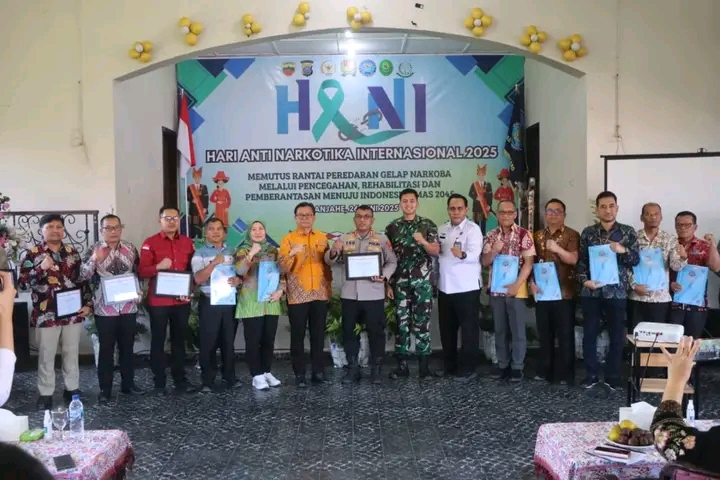 TANAH KARO,JATANRAS-news.com || Polres Tanah Karo di bawah kepemimpinan Kapolres AKBP Eko Yulianto, S.H., S.I.K., M.M., M.Tr.Opsla menunjukkan komitmen nyata dalam upaya pemberantasan narkoba di wilayah hukumnya. Hal ini dibuktikan dengan diterimanya penghargaan khusus dari Badan Narkotika Nasional Kabupaten (BNNK) Karo dalam acara peringatan Hari Anti Narkotika Internasional (HANI) 2025 yang digelar di Zentrum PPWG GBKP, Jalan Nabung Surbakti No. 2, Kabanjahe, Kamis(26/6).