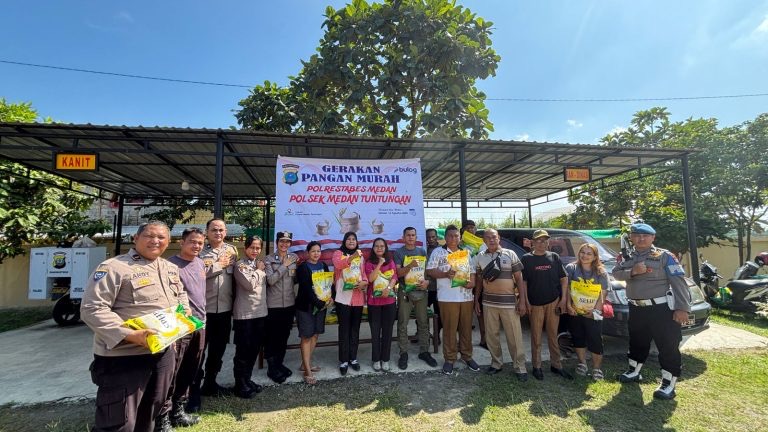 MEDAN,JATANRAS-news.com || Dalam rangka menyambut Hari Ulang Tahun (HUT) ke-80 Republik Indonesia, Polsek Medan Tuntungan menggelar Gerakan Pangan Murah dengan penjualan beras murah yang bekerja sama dengan Perum Bulog. Kegiatan ini berlangsung di Mako Polsek Medan Tuntungan pada Selasa (12/8/2025) mulai pukul 10.00 WIB hingga selesai.