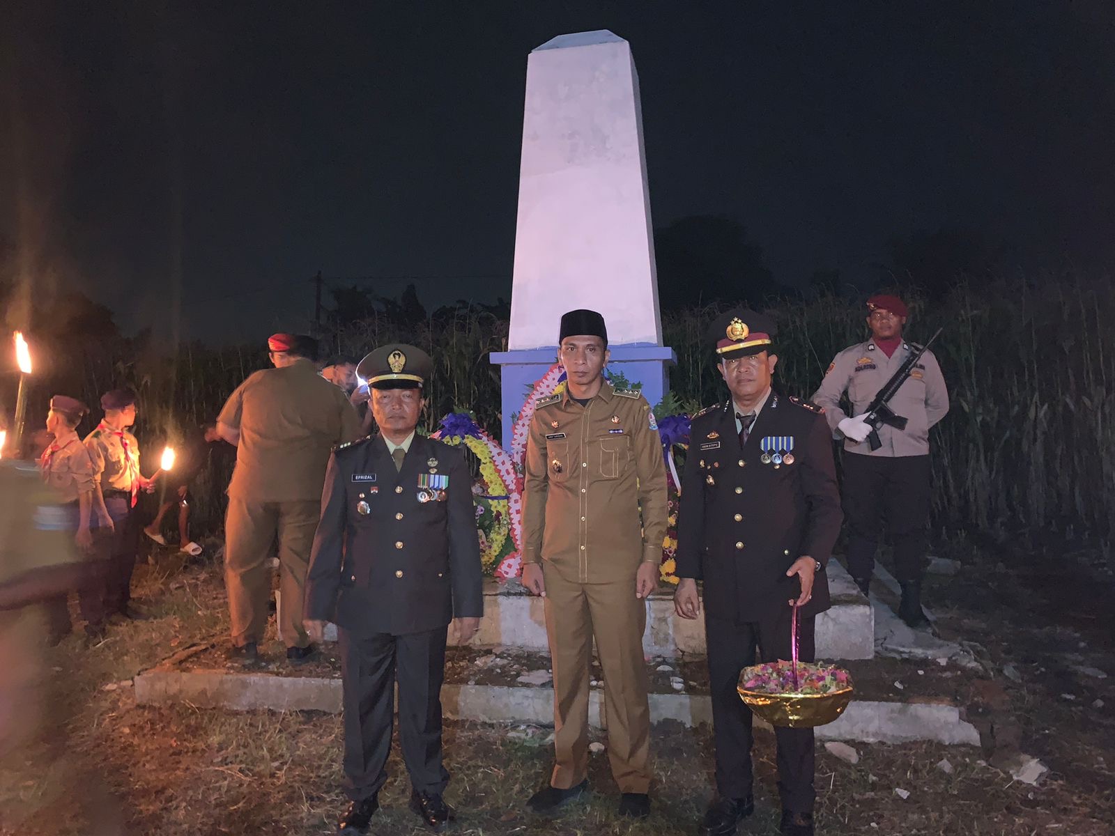 Forkopimcam Kutalimbaru Giat Meletak Karangan Bunga dan Menabur Bunga sebagai tanda kehormatan kepada Para Pahlawan yang telah gugur.