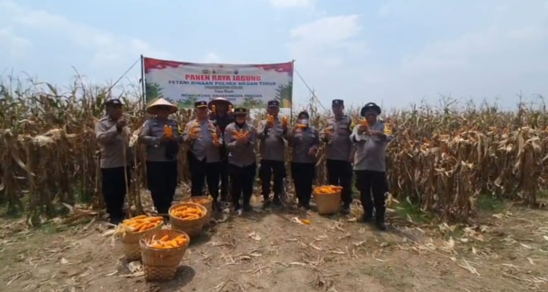 Deli Serdang, JATANRAS-news.com || Panen Raya Jagung Serentak Kuartal II dilahan Binaan Polsek Medan Timur Dalam Rangka Mendukung Swasembada Pangan Tahun 2025 bertenpat di Kebun Damar Wulan Dusun 24 Jalan Wulan Desa Sampali Kecamatan.Percut Seituan.Selasa 19 Agustus 2025.pukul 11.00.wib