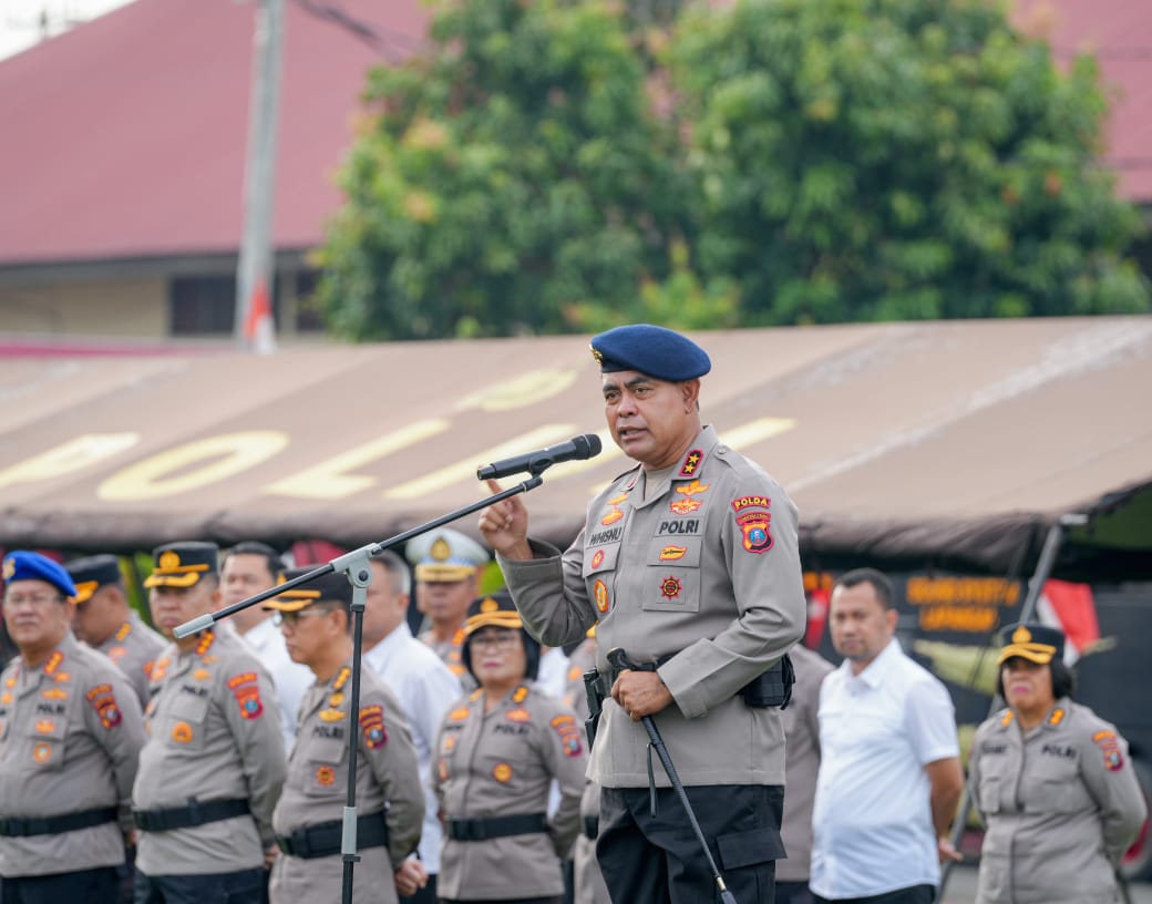 Ia juga menekankan pentingnya menjalankan tugas sesuai standar operasional prosedur (SOP) yang berlaku, agar setiap langkah tetap profesional, humanis, dan berlandaskan nilai-nilai pengabdian. “Alhamdulillah, berkat kekompakan dan semangat kebersamaan, kondisi Sumatera Utara hari ini aman dan kondusif. Mari kita rawat dan tingkatkan suasana ini demi masyarakat dan daerah yang kita cintai bersama,” tambah Kapolda. Apel turut dihadiri Wakapolda Sumut, Irwasda, Karo Ops, Karo SDM, Dansat Brimob, Kabid Humas, serta pejabat utama Polda Sumut lainnya. Kehadiran para pimpinan ini menjadi simbol dukungan penuh bagi personel di lapangan, sekaligus pengingat bahwa sinergi dan kebersamaan adalah kunci menjaga stabilitas dan kedamaian Sumatera Utara.