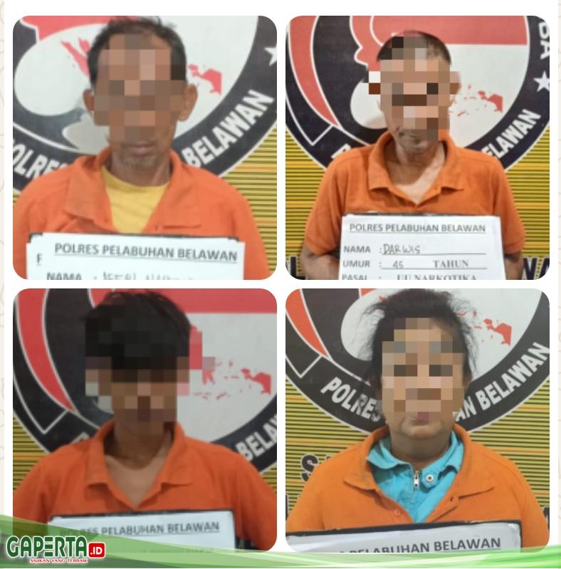 Kasat Narkoba Polres Pelabuhan Belawan, AKP Ismail Pane, SH., MH., pada Minggu (31/8) siang menjelaskan bahwa penangkapan para pelaku dilakukan berkat informasi dari masyarakat terkait maraknya peredaran narkoba di lokasi tersebut.