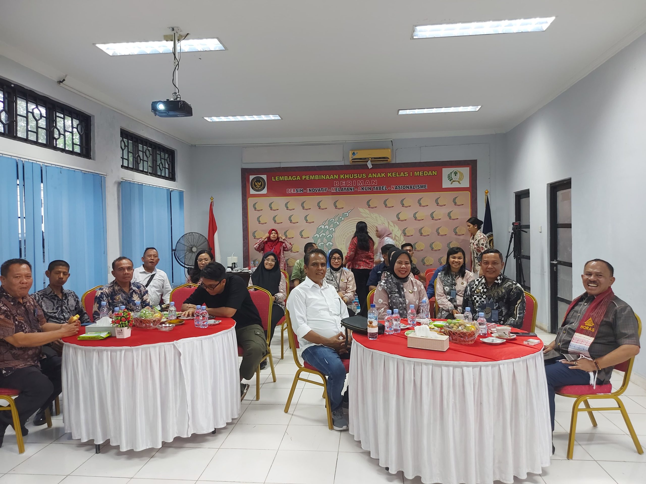 Kunjungan ini disambut hangat oleh Fauzi Harahap,A.Md.IP.,SH.,MH Kepala Pembinaan Khusus Anak Kelas 1 Medan,beserta jajaran Struktural dan Pegawai LPKA Kelas I Medan. Serta hadir juga Yekti Apriyanti, Amd.IP., S.Pd., M.Si Kepala Lapas Wanita Kelas II Medan.