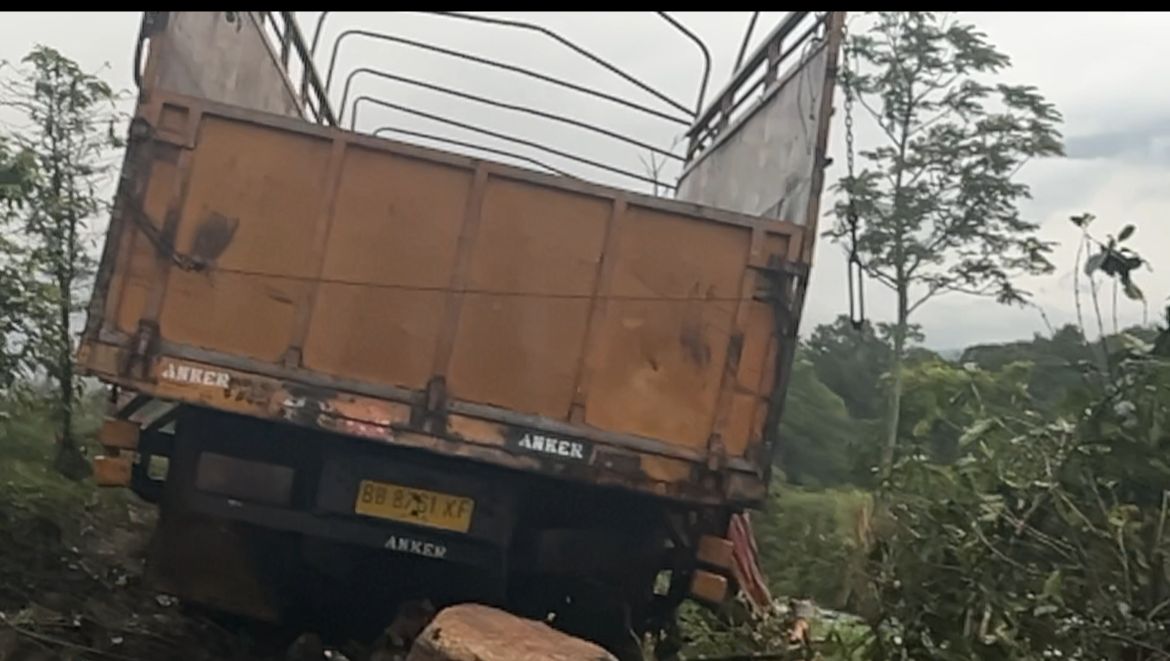 Merek,JATANRAS-news.com — Sebuah truk Fuso berwarna oranye dengan nomor polisi BB 8761 XF mengalami kecelakaan tunggal dengan masuk ke jurang di Jalan Raya Merek–Sidikalang, Rabu (24/9/2025) sekitar pukul 17.00 WIB.
