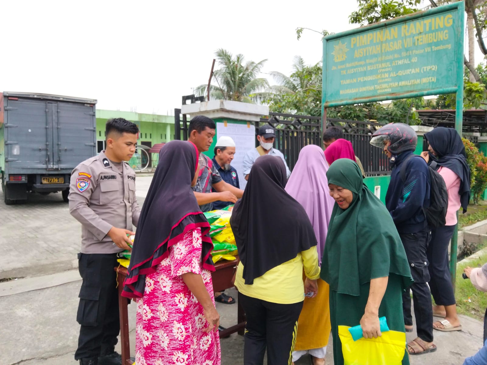 Di Masjid Taqwa Al-Falah, Pasar VII Tembung, Kabupaten Deli Serdang, tim yang dipimpin AKBP Kamdani menggelar pasar murah beras SPHP hasil kerja sama Polri dan Bulog.