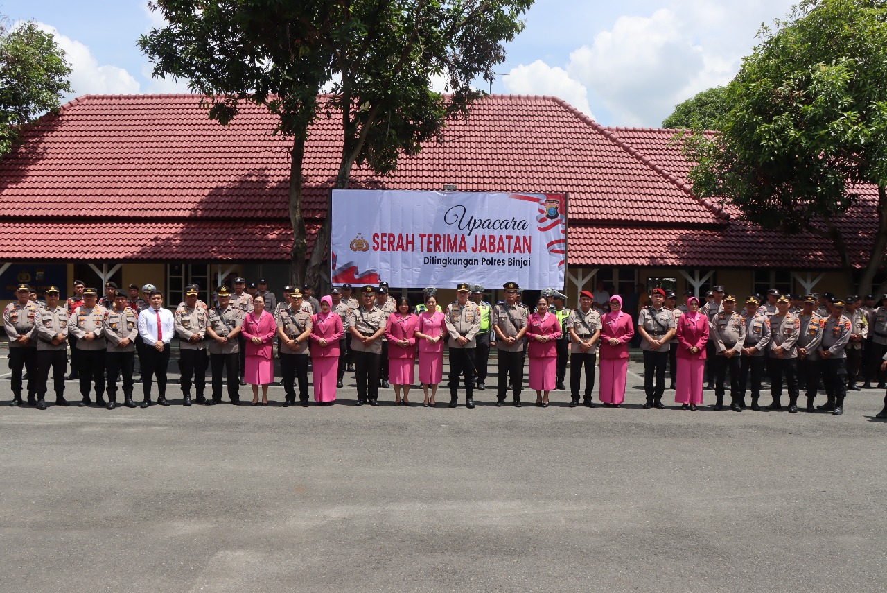 Kota Binjai,JATANRAS-news.com || Kapolres Binjai AKBP BAMBANG C. UTOMO, S.H., S.I.K., M.Si, memimpin pelaksanaan serah terima jabatan pejabat utama (PJU) polres Binjai. Serah terima jabatan tersebut dilaksanakan di lapangan apel polres Binjai, jalan Sultan Hasanuddin No.1 Binjai kelurahan satria kecamatan Binjai kota, provinsi sumatera utara, Senin (13/10/25) pukul 11.00 wib.