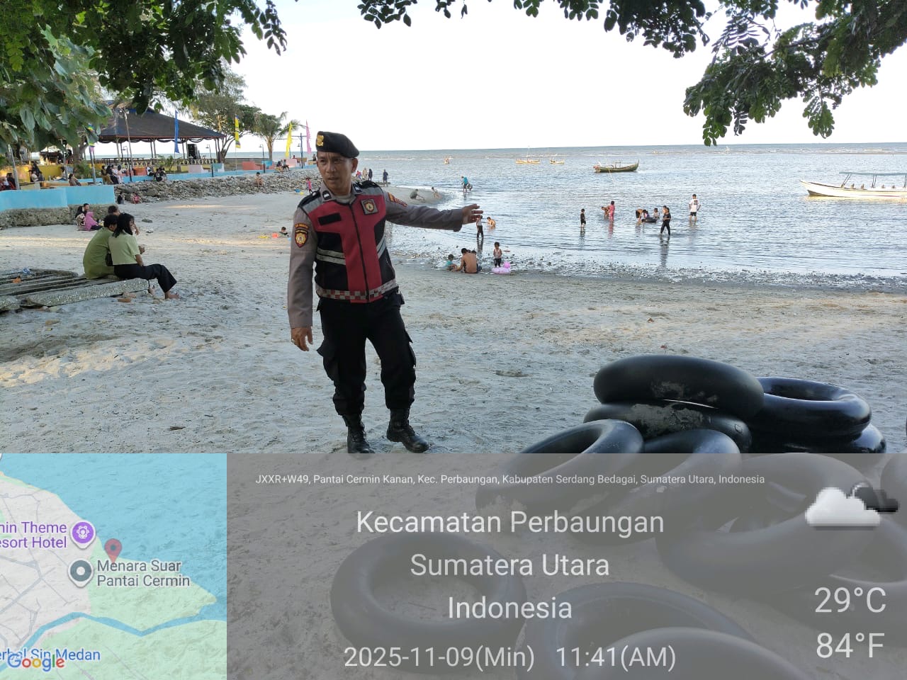 Personil Polres Serdang bedagai, Aiptu Hartanto dan Bripka Ramses Panjaitan. Ditempatkan pada beberapa lokasi obyek vital di wilayah Kab. Serdang Bedagai, di antaranya Pantai Pondok Permai, Pantai Bali Lestari, Pantai Cermin Theme Park, Pantai Wong Rame, Pantai Sri Mersing, Pantai Kuala Putri, dan Pantai 88.