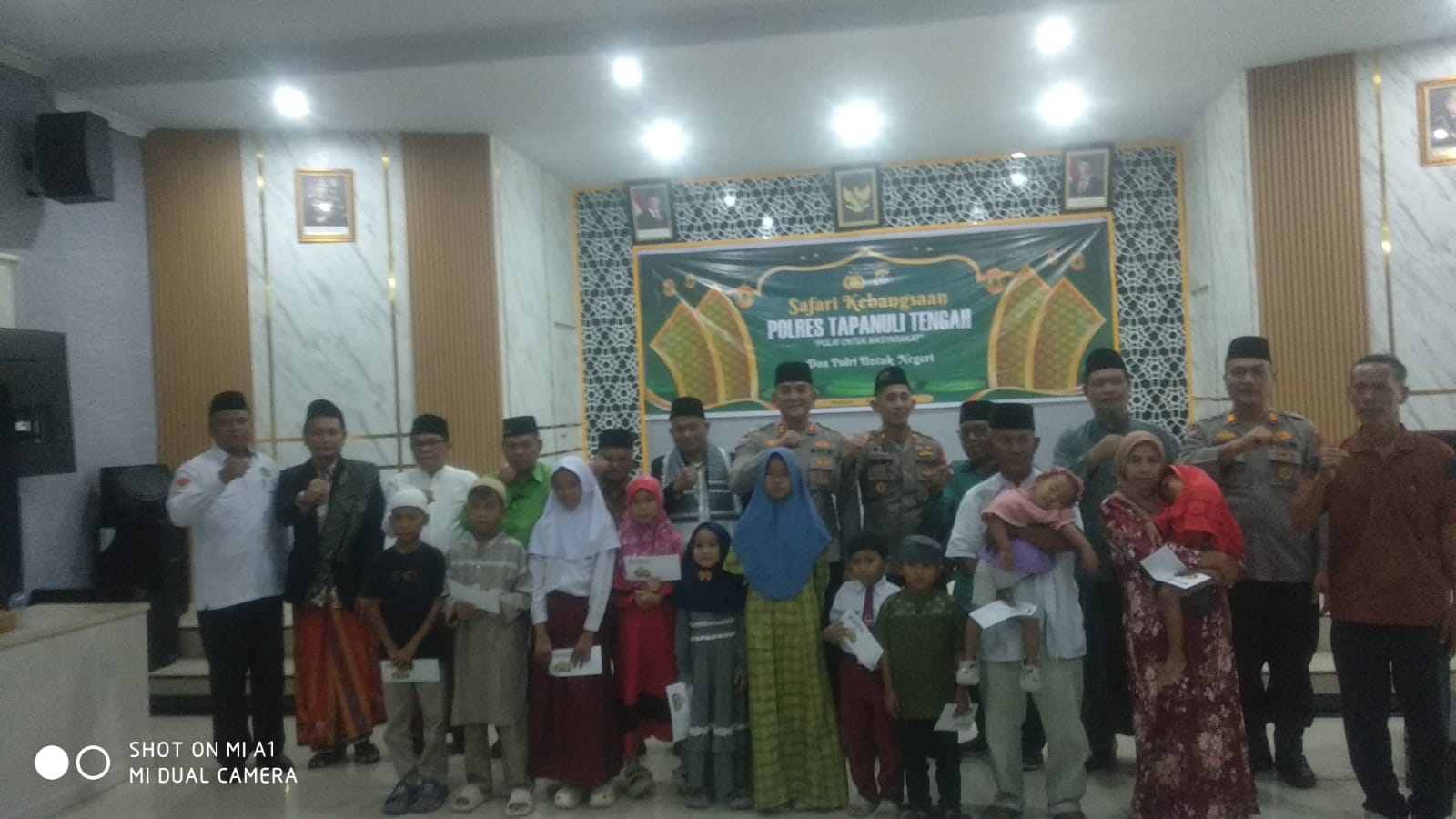 Setelah itu, Polres Tapteng memberikan tali asih kepada anak-anak yatim sebagai bentuk kepedulian sosial. Rangkaian dilanjutkan dengan ceramah kebangsaan oleh KH. Akhmad Khambali, S.E., M.M., yang kemudian diteruskan dengan ceramah inti oleh Romo KH. Ali Hasyim mengangkat tema “Polri untuk Masyarakat dan Doa Polri untuk Negeri.”