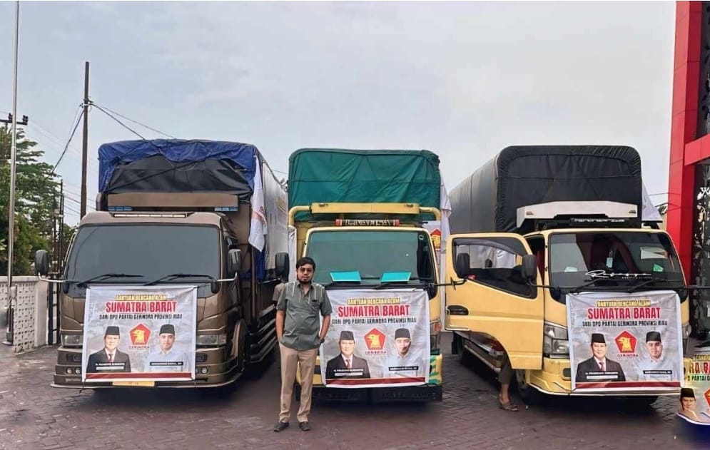 Sebanyak tiga truk yang mengangkut seluruh bantuan tersebut diberangkatkan dari kantor DPD Gerindra Riau dan dikawal oleh Satuan Lalu Lintas Polda Riau menuju Provinsi Sumatera Barat.