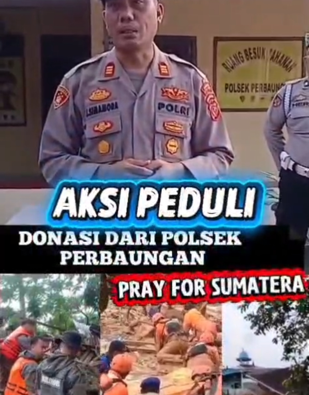 Kegiatan kemanusiaan ini dipimpin langsung oleh Kapolsek Perbaungan AKP JB Simamora S. H, bersama jajaran personel dan Bhayangkari, dengan mengumpulkan donasi berupa sembako, pakaian layak pakai, air mineral, serta dana bantuan yang nantinya akan disalurkan melalui posko resmi bantuan kemanusiaan.