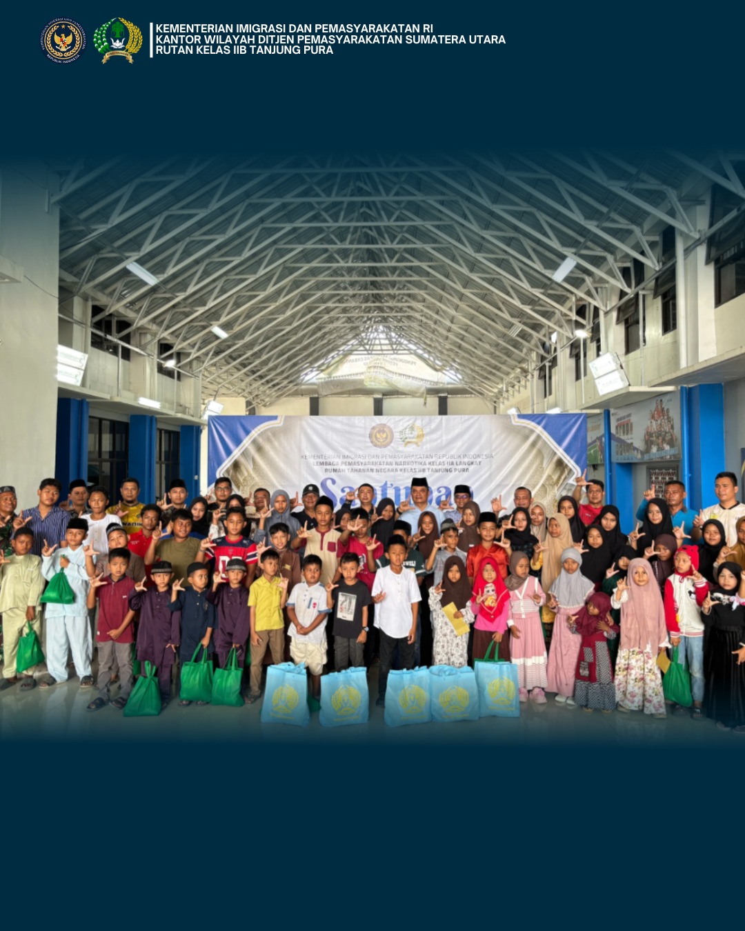 LANGKAT, JATANRAS-news.com – Semangat kepedulian sosial kembali ditunjukkan jajaran pemasyarakatan melalui kolaborasi antara Rumah Tahanan Negara Kelas IIB Tanjung Pura dan Lembaga Pemasyarakatan Narkotika Langkat dalam kegiatan penyaluran santunan kepada 50 anak yatim/piatu di sekitar wilayah UPT Pemasyarakatan, Jumat (13/02).