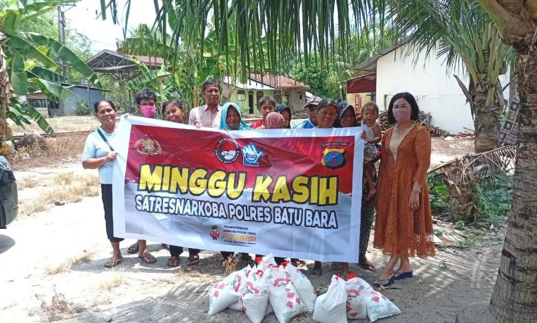 Satresnarkoba Polres Batu Bara Gelar Minggu Kasih, Berbagi Sembako dan Edukasi Bahaya Narkoba
