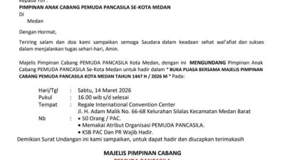 Medan,JATANRAS-news.com — Majelis Pimpinan Cabang (MPC) Pemuda Pancasila Kota Medan menggelar kegiatan buka puasa bersama dalam rangka mempererat silaturahmi antar kader organisasi di bulan suci Ramadan 1447 H / 2026 M. Kegiatan ini mengundang seluruh pimpinan anak cabang (PAC) Pemuda Pancasila se-Kota Medan.